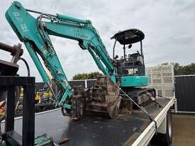 For Sale: This 2022 model Kobelco SK30SR-6 Open Canopy Mini Excavator comes back to us from the original owner, after upgrading to a new one. The machine is in good condition in appearance only with some scratches dents to panels, which would be reasonable for age hours.