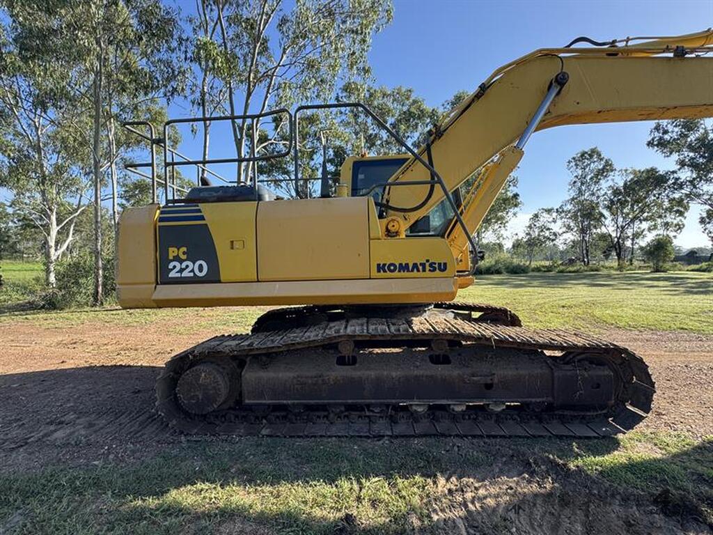 KOMATSU PC220-8 EXCAVATOR. Reverse camera. E Stops. Isolator. Auxillary piping. Supplied with 1800mm tilting mud bucket and 300mm GP bucket. SWL 2350kgs. UHF. Located Gladstone, QLD
