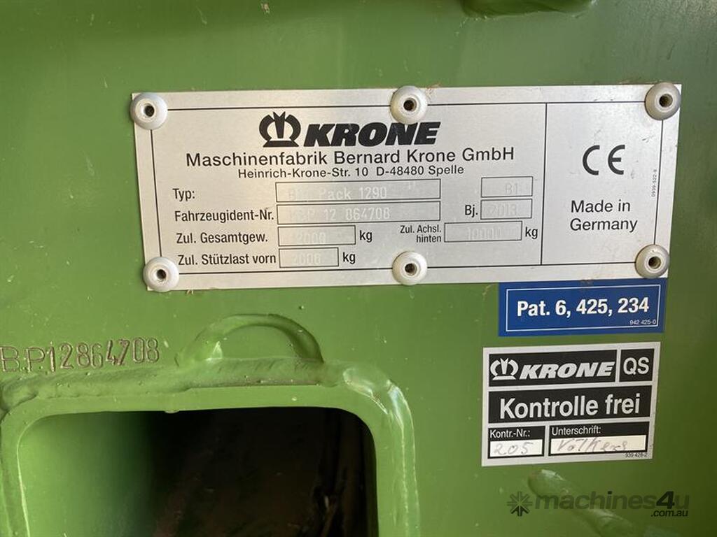 KRONE Big Pack 1290 - 42,000 bales made, Krone has come out and all but rebuilt this machine, always serviced, vendor has spent good money to keep it in great order. Tyres are good, all in working condition. This item is available via online auction between the 15th and 17th of February 2021. Items are located in Mallawa NSW.