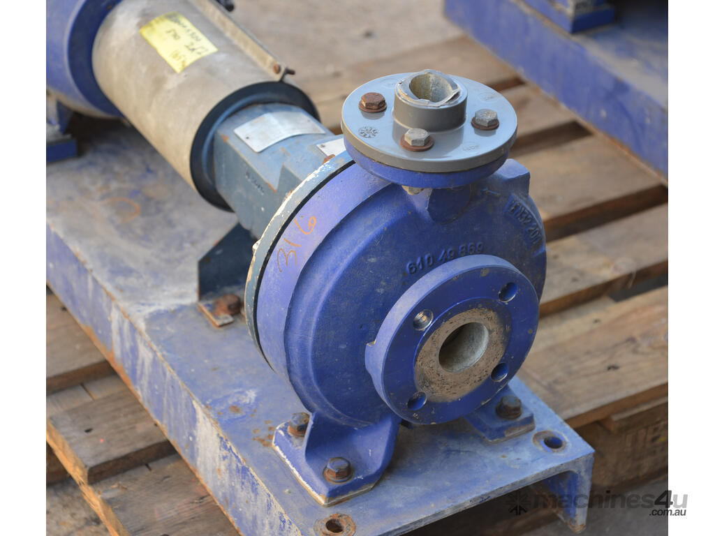 This is one of a large number of predominantly KSB pump sets we acquired from the closure of the GM Holden car plant, we also have related filtration equipment, these pumps have been flushed out and are in good functional condition wide range of motor sizes and impeller diameters available , stock is a mix of 316 SS and Carbon steel, please get in touch if you cant find a suitable unit for your application in our store.