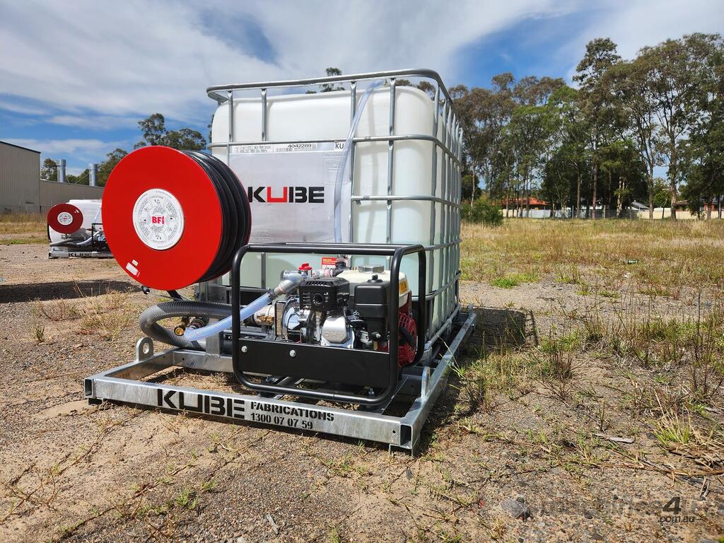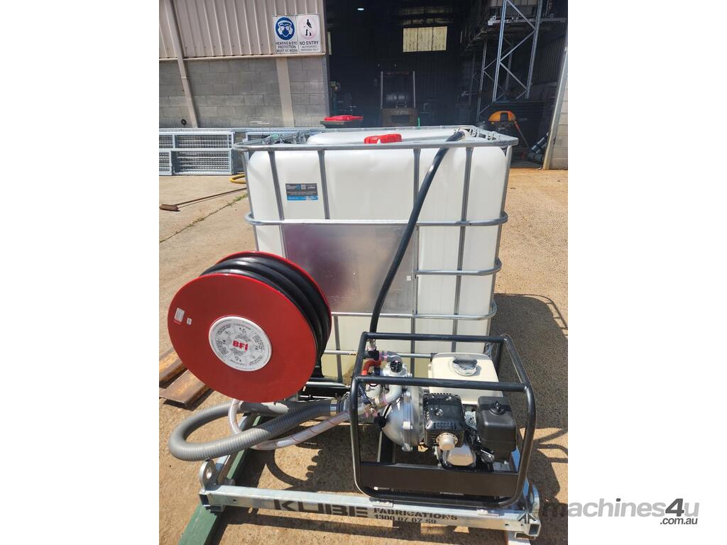 1,000L Deluxe Premium FireKUBE Skid, Full Galvanised Frame, Honda GX200 6.5HP Engine, BAR Pump, BFI 36M Hose available either rear facing or side facing, 5M Suction Hose for drawing water from dams, creeks, etc. Pressure relief value. Lifting lugs on four corners. Pressure tested. Ideal for trailer or back of utility for firefighting, machinery and industrial washdown projects. Rotamoulded tanks available, High Pressure Washer Systems available, Single & Dual Axle Trailer options also available.