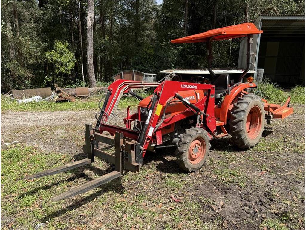 KUBOTA L3800D TRACTOR WITH FEL AND MOWER, S/N: 68306, E/N: D1803-BU0331, 542 HOURS SHOWING. HOWARD/SITREX 180CM FINISH MOWER. FEL ATTACHMENT WITH FORKS AND 4-1 BUCKET. LOCATION: MOOLOOLAH VALLEY, QLD 4553. INSPECTION & COLLECTION: BY APPOINTMENT ONLY. ENQUIRIES: PETER VUICHOUD ON OR PETEREMERALDAUCTIONCENTRE