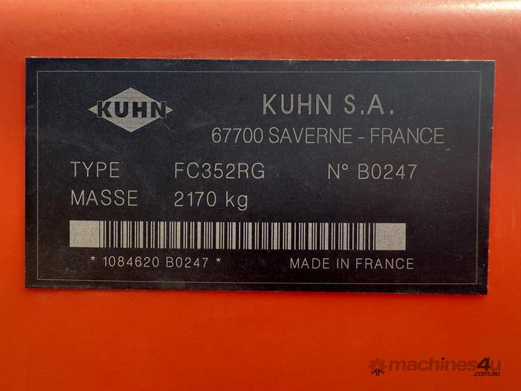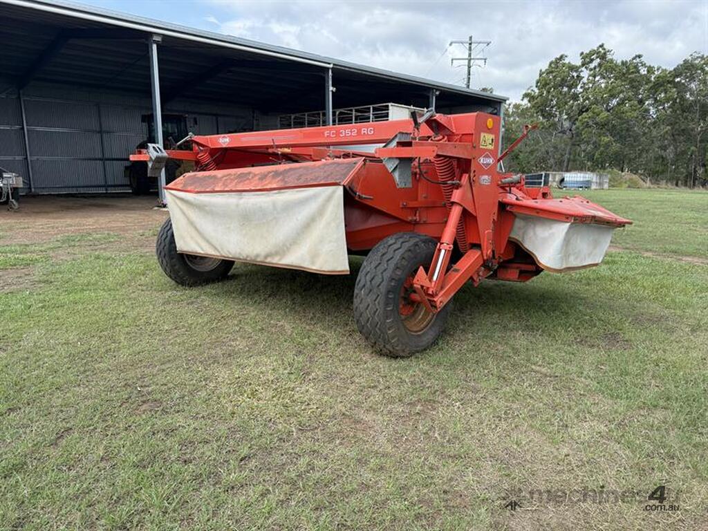KUHN FC352 RG MOWER CONDITIONER, S/N: B0247, RUBBER ON FEED ROLLERS PERISHED AND MISSING. LOCATION: EULEILAH, QLD 4674. INSPECTIONS & COLLECTIONS: BY APPOINTMENT ONLY. ENQUIRIES: JOHN MCDOUGALL ON OR JOHNEMERALDAUCTIONCENTRE