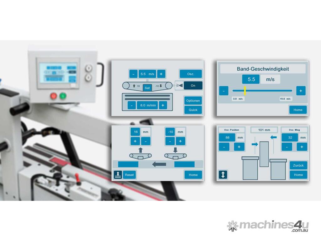 A large part of the operating inputs on the flash are made using the touch screen which can be rotated by 270°. This makes it very easy to adjust oscillation, sanding belt and feed speed, sanding pad insert and release times, as well as storing and recalling sanding programs.