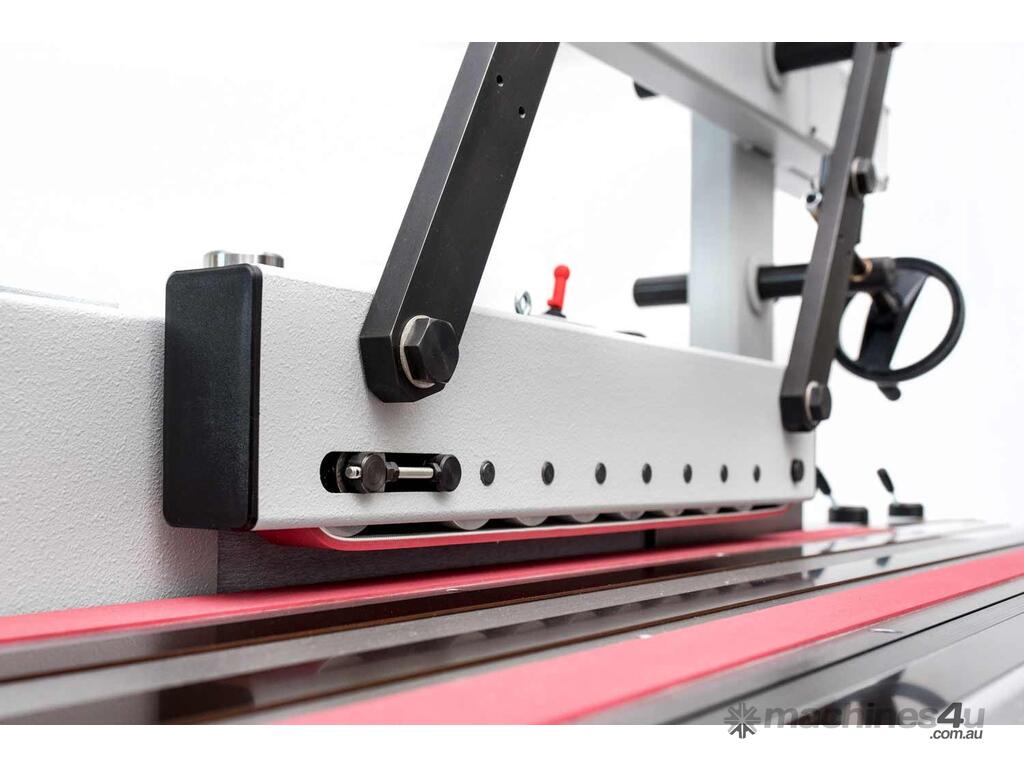 The heart of all our edge sanding machines is the sanding unit. It offers a whole range of intelligent features. For example, the sanding belt does not oscillate by tilting the belt rollers. Instead, the entire sanding unit moves up and down. The oscillation stroke as well as the oscillation range are simply set by the use of two buttons. Maximum oscillation range is a whopping 90mm/3.5". Thanks to the flexible adjustment and the large oscillation range, sanding belts can be used optimally over their entire width, without any tedious adjustment of the working table height. The oscillation mechanism is driven by a separate motor.