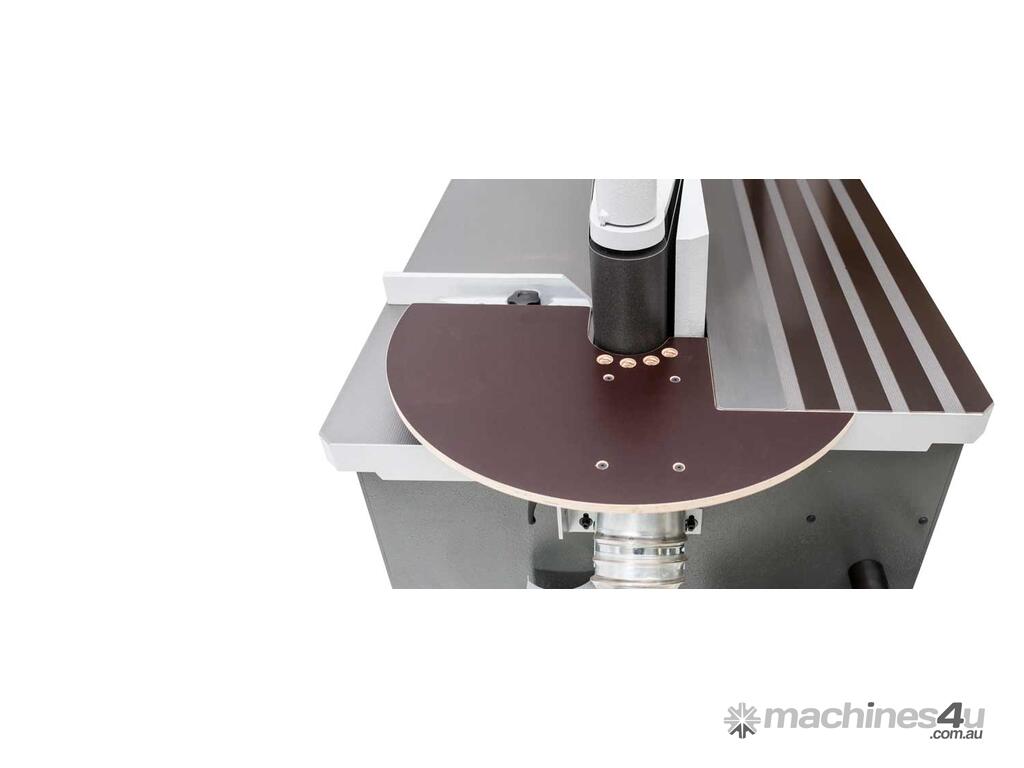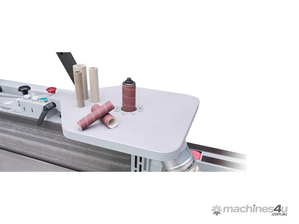 With the optionally available top sanding station, very fine internal roundings as well as holes in workpieces can be sanded with the bobbin device. The solid aluminium table is quickly mounted and can be attached to the side of the edge sander when not in use. The table has holes for dust removal. As the sanding bobbin is part of the sanding unit, you also benefit from the total oscillation path of up to 90mm. The mandrels can be equipped with sanding bobbins of different diameters: ? 25 mm (1.0"), ?30 mm (1.2"), ?40 mm (1.6"), ?45 mm (1.8") x 100 mm (4")