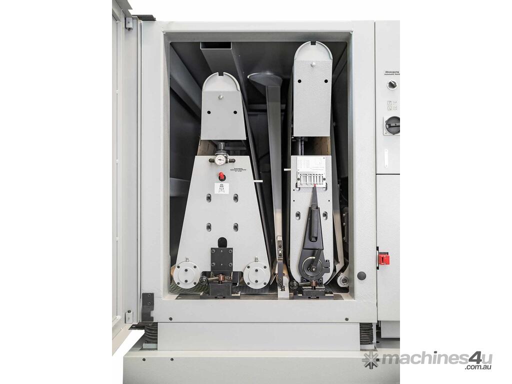 Head Movement / Constant Pass Line: For a good three decades we have been equipping our machines exclusively with moving top sections. Why? Compared to classic table adjustment, it is more complex in design, but also better in many respects. The machine can be loaded with higher workpiece weights, it maintains its precision more reliably and you have the advantages of a constant working height.