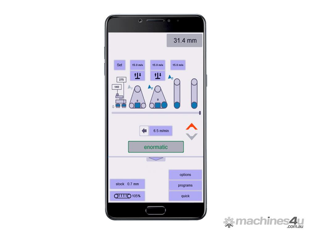 Comfort operation: Thanks to the Enormatic function, Kundig sanders can be easily, reliably and very comfortably operated. Workpiece thickness measuring and starting of the sanding process is automatically executed.