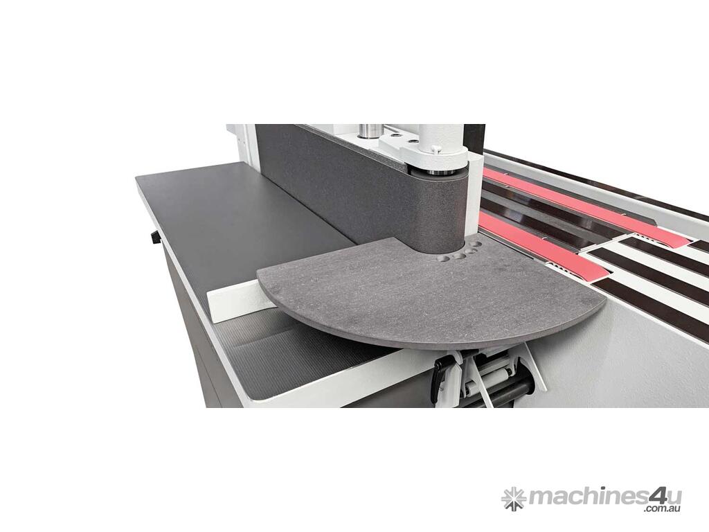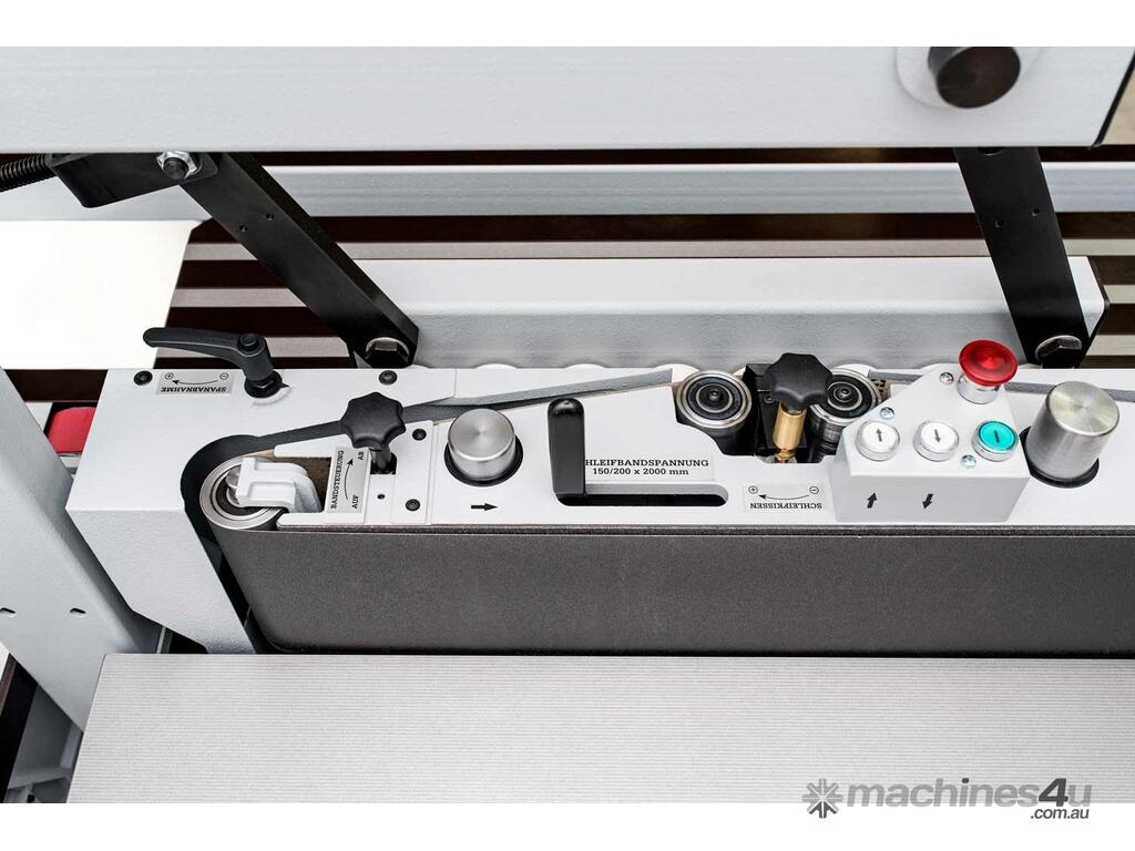 The heart of all our edge sanding machines is the sanding unit. It offers a whole range of intelligent features. For example, the sanding belt does not oscillate by tilting the belt rollers. Instead, the entire sanding unit moves up and down. The oscillation stroke as well as the oscillation range are simply set by the use of two buttons. Maximum oscillation range is a whopping 90mm/3.5". Thanks to the flexible adjustment and the large oscillation range, sanding belts can be used optimally over their entire width, without any tedious adjustment of the working table height. The oscillation mechanism is driven by a separate motor.