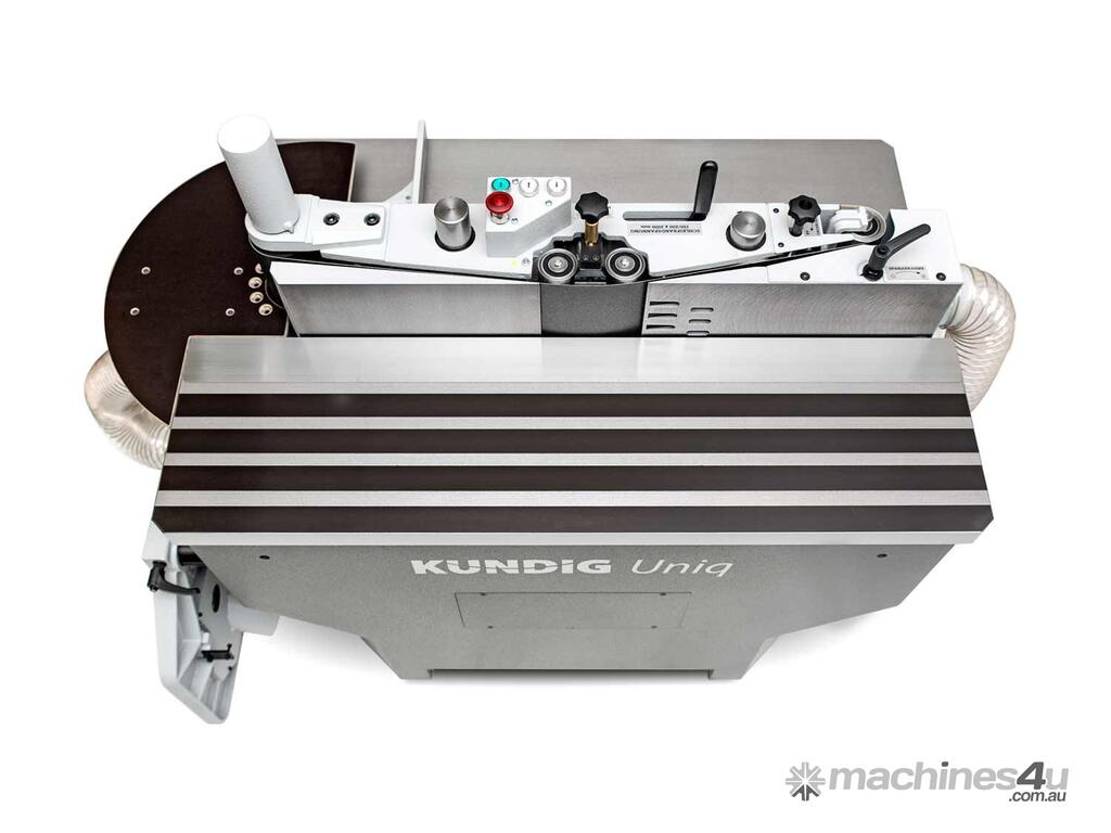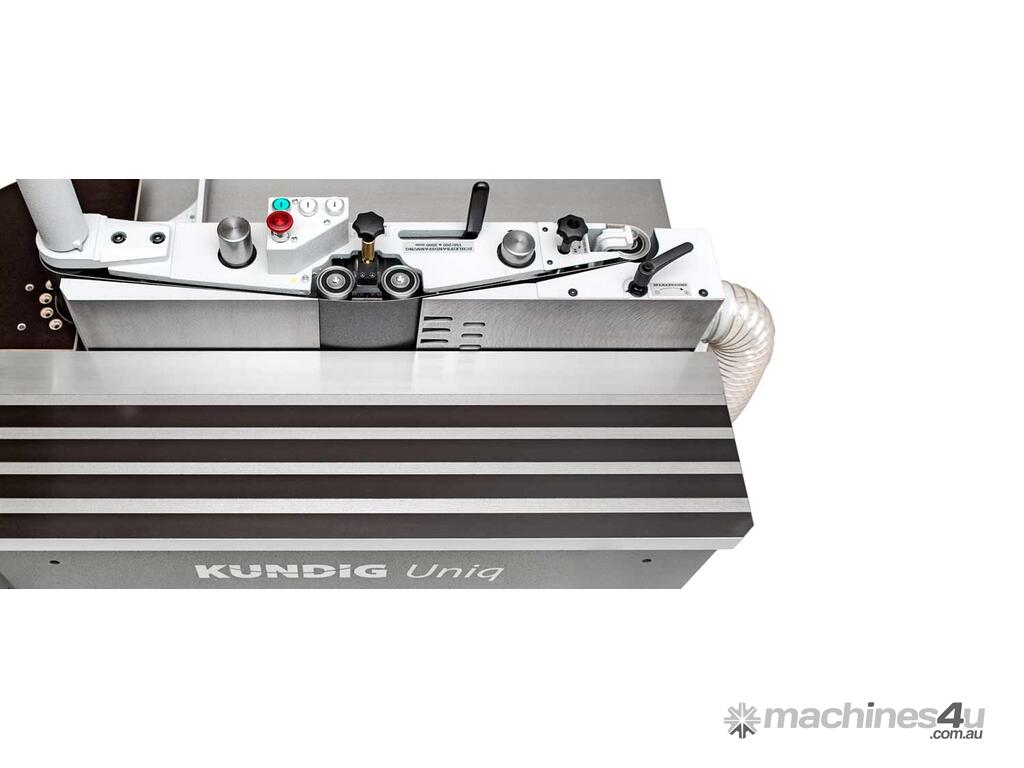 Our Uniq series is the full-fledged basis of our product range and shares all the features that have helped the Kündig edge sanding machine gain its reputation as a robust, versatile precision instrument. Part of its extremely solid construction is the oscillating sanding unit, which offers a maximum oscillation range of 90mm/3.5" and the possibility of motorised pivoting between 90 and 45°. All common edge processing operations can be carried out using the four sanding stations of the Uniq edge sander.