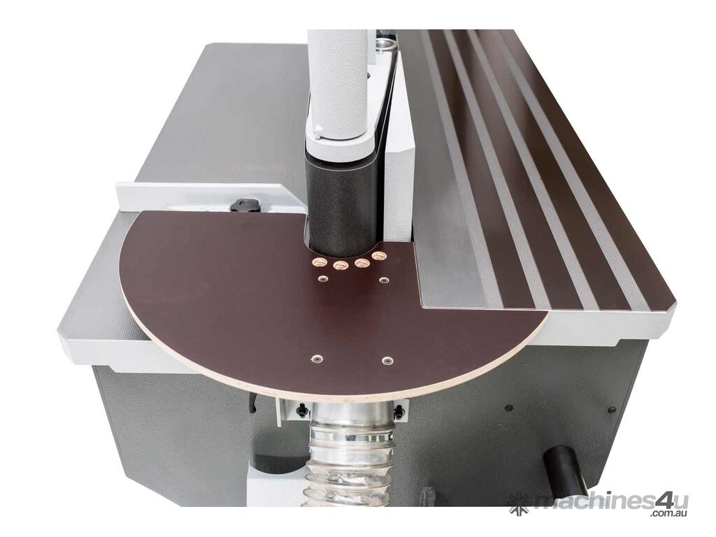 With the optionally available top sanding station, very fine internal roundings as well as holes in workpieces can be sanded with the bobbin device. The solid aluminium table is quickly mounted and can be attached to the side of the edge sander when not in use. The table has holes for dust removal. As the sanding bobbin is part of the sanding unit, you also benefit from the total oscillation path of up to 90mm. The mandrels can be equipped with sanding bobbins of different diameters: ? 25 mm (1.0"), ?30 mm (1.2"), ?40 mm (1.6"), ?45 mm (1.8") x 100 mm (4")
