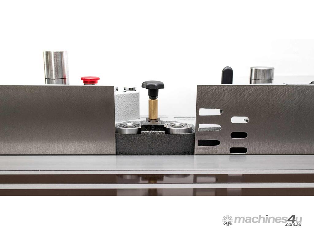 The heart of all our edge sanding machines is the sanding unit. It offers a whole range of intelligent features. For example, the sanding belt does not oscillate by tilting the belt rollers. Instead, the entire sanding unit moves up and down. The oscillation stroke as well as the oscillation range are simply set by the use of two buttons. Maximum oscillation range is a whopping 90mm/3.5". Thanks to the flexible adjustment and the large oscillation range, sanding belts can be used optimally over their entire width, without any tedious adjustment of the working table height. The oscillation mechanism is driven by a separate motor.