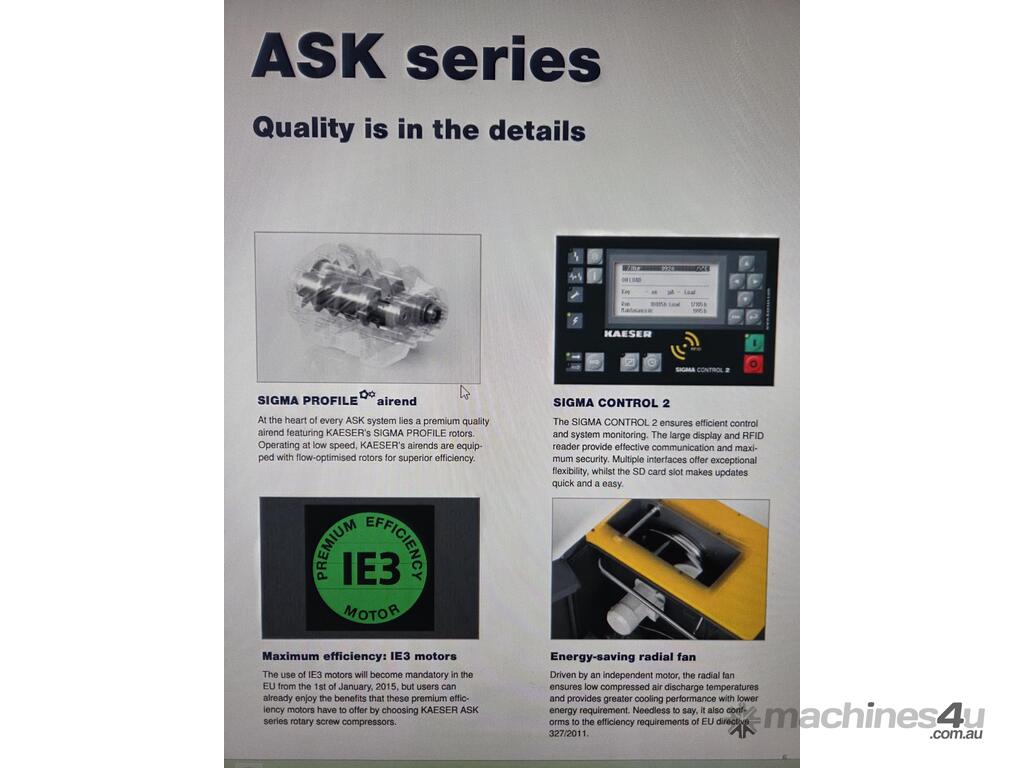1). KAESER ASK 40T 22kw 30hp 8 BAR 2-IN-1 FEATURED ROTARY SCREW COMPRESSOR Year 11/2018 INCLUDING BUILT-IN REFRIGERATED AIR DRYER / FILTERS, SIGMA 2 ELECTRONIC CONTROLLER, RFID SERVICE OPTION INCLUDING SWIPE CARD, MADE IN GERMANY, HEAVY DUTY, SUPER QUIET, GENUINE LOW 20,300 RUN HOURS, RECENTLY SERVICED, 1 OWNER, TOP CONDITION. REFER ATTACHED BROCHURE. REQUEST EXTRA PHOTOS. 1/2 NEW PRICE!