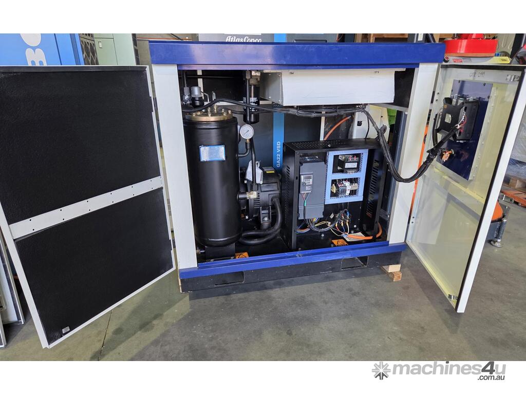 3). ATLAS COPCO GA22 VSD 22kw 30hp 415v 8-13 BAR 138CFM VARIABLE SPEED ROTARY SCREW COMPRESSOR BASE MOUNT Year 10/2020, GENUINE LOW 5,500 RUN HOURS (TBC), REGULARLY SERVICED INCLUDING RECENT OIL SEPARATOR REPLACEMENT. HUGE PRICE REDUCTION! TESTED SHOWING OIL LEAK FROM DIRECT DRIVE ELECTRIC MOTOR, REPAIRABLE.
