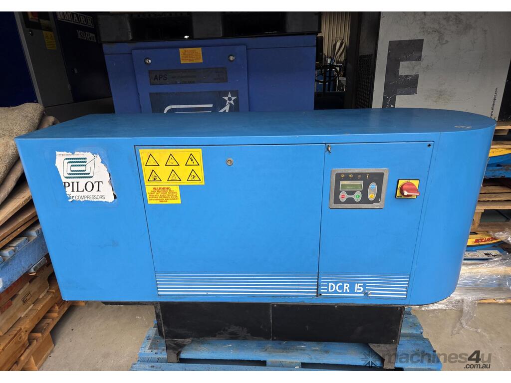 7). PILOT DCR 15 15kw 20hp 415v 10 BAR DIRECT DRIVE ROTARY SCREW COMPRESSOR - NEEDS NEW ELECTRIC MOTOR.