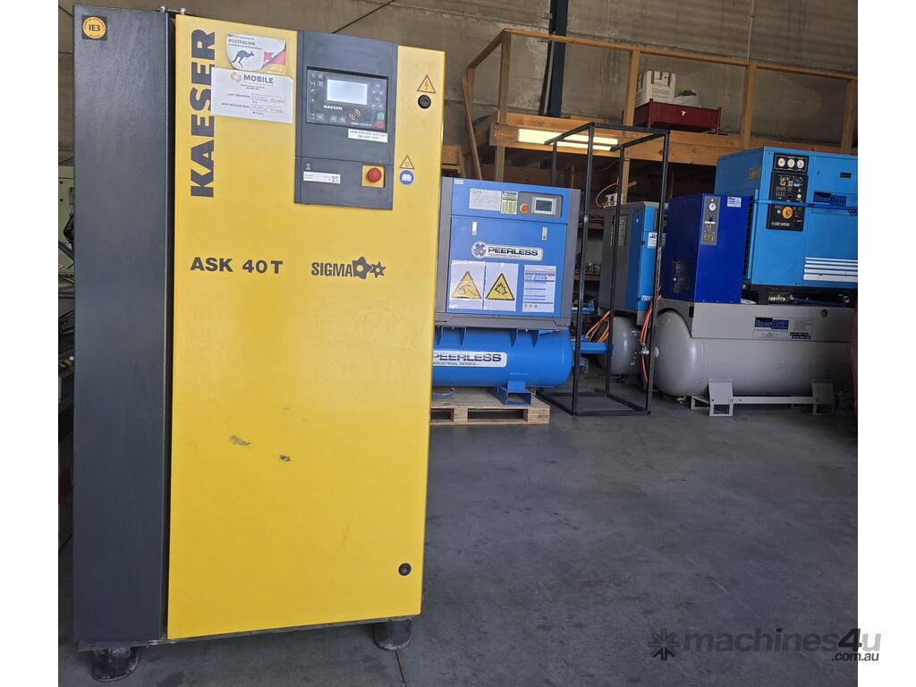 1). KAESER ASK 40T 22kw 30hp 8 BAR 2-IN-1 FEATURED ROTARY SCREW COMPRESSOR Year 11/2018 INCLUDING BUILT-IN REFRIGERATED AIR DRYER / FILTERS, SIGMA 2 ELECTRONIC CONTROLLER, RFID SERVICE OPTION INCLUDING SWIPE CARD, MADE IN GERMANY, HEAVY DUTY, SUPER QUIET, GENUINE LOW 20,300 RUN HOURS, RECENTLY SERVICED, 1 OWNER, TOP CONDITION. REFER ATTACHED BROCHURE. REQUEST EXTRA PHOTOS. 1/2 NEW PRICE!