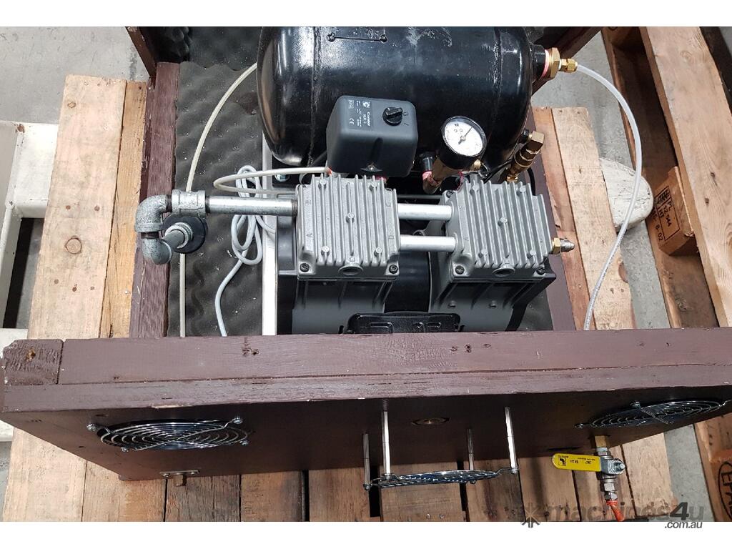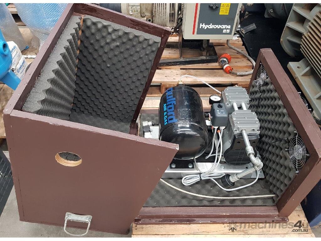 2). PULFORD Oil-Free Silent Portable 240v Air Compressor, Portable Acoustic Road Case with Handles, Thomas USA Motor 4.1 Amps, Pearson Australian Air Tank Year 2016, Taiwanese Twin Air Cooling Fans, As New, Suit Dental, Medical, Food etc