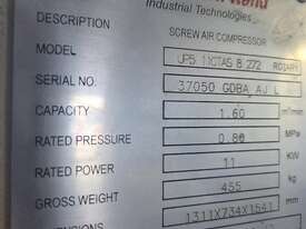 2). INGERSOLL RAND UP5 11CTAS-kw 15hp 415v 8 BAR 65CFM 2-in-1 ROTARY SCREW COMPRESSOR Year 12/2009 MADE IN ITALY MOUNTED ON 272 LITRE AIR RECEIVER TANK, GENUINE HOURS, HEAVY DUTY. REQUEST BROCHURE.
