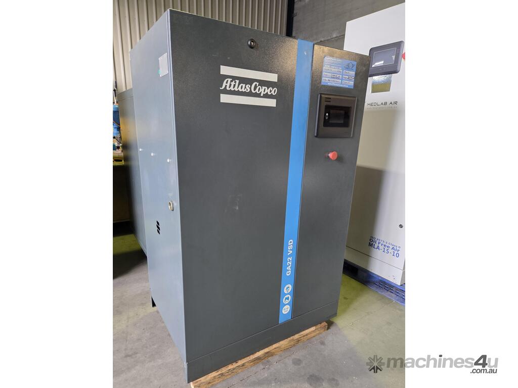 3). ATLAS COPCO GA22 VSD 22kw 30hp 415v 8-13 BAR 138CFM VARIABLE SPEED ROTARY SCREW COMPRESSOR BASE MOUNT Year 10/2020, GENUINE LOW 5,500 RUN HOURS (TBC), REGULARLY SERVICED INCLUDING RECENT OIL SEPARATOR REPLACEMENT. HUGE PRICE REDUCTION! TESTED SHOWING OIL LEAK FROM DIRECT DRIVE ELECTRIC MOTOR, REPAIRABLE.