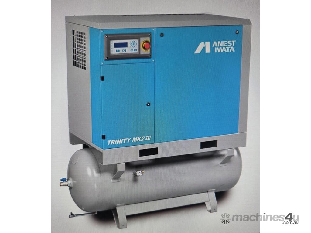 6). BROADBENT (ANEST IWATA) TRINITY MK2 -kw 15hp 415v 8 BAR 3-IN-1 FULLY FEATURED ROTARY SCREW COMPRESSOR Year 2019 MADE IN ITALY, INCLUDING BUILT-IN REFRIGERATED AIR DRYER 240v MOUNTED ON 270 LITRE AIR RECEIVER TANK, GENUINE LOW 8,574 RUN HOURS, HEAVY DUTY TOP QUALITY - POA. PHOTOS TO COME.
