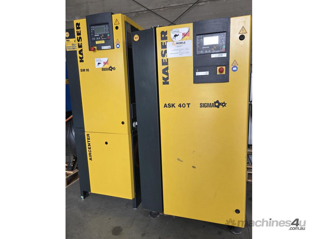 8). KAESER ASK 40T 22kw 30hp 8 BAR 2-IN-1 FEATURED ROTARY SCREW COMPRESSOR Year 11/2018 INCLUDING BUILT-IN REFRIGERATED AIR DRYER / FILTERS, SIGMA 2 ELECTRONIC CONTROLLER, RFID SERVICE OPTION INCLUDING SWIPE CARD, MADE IN GERMANY, HEAVY DUTY, SUPER QUIET, GENUINE LOW 20,300 RUN HOURS, RECENTLY SERVICED, 1 OWNER, TOP CONDITION. REFER ATTACHED BROCHURE. REQUEST EXTRA PHOTOS. 1/2 NEW PRICE!