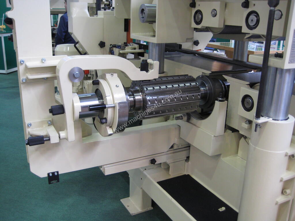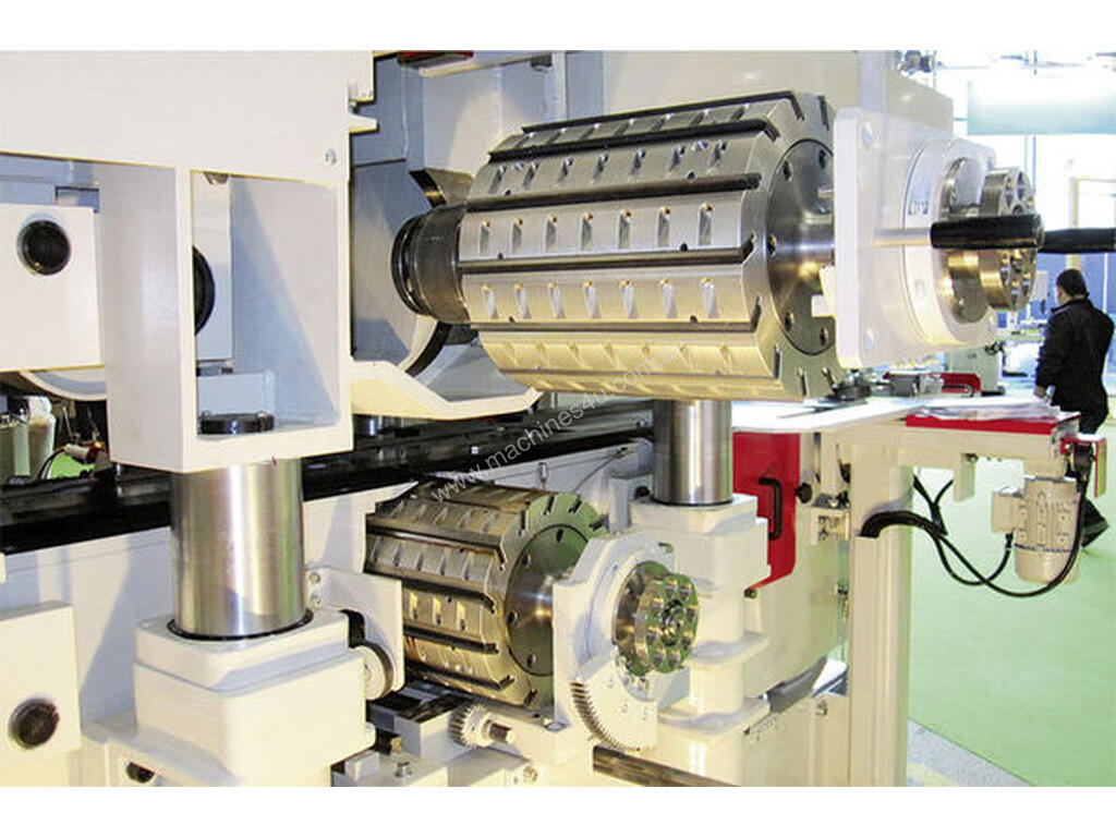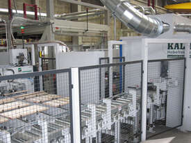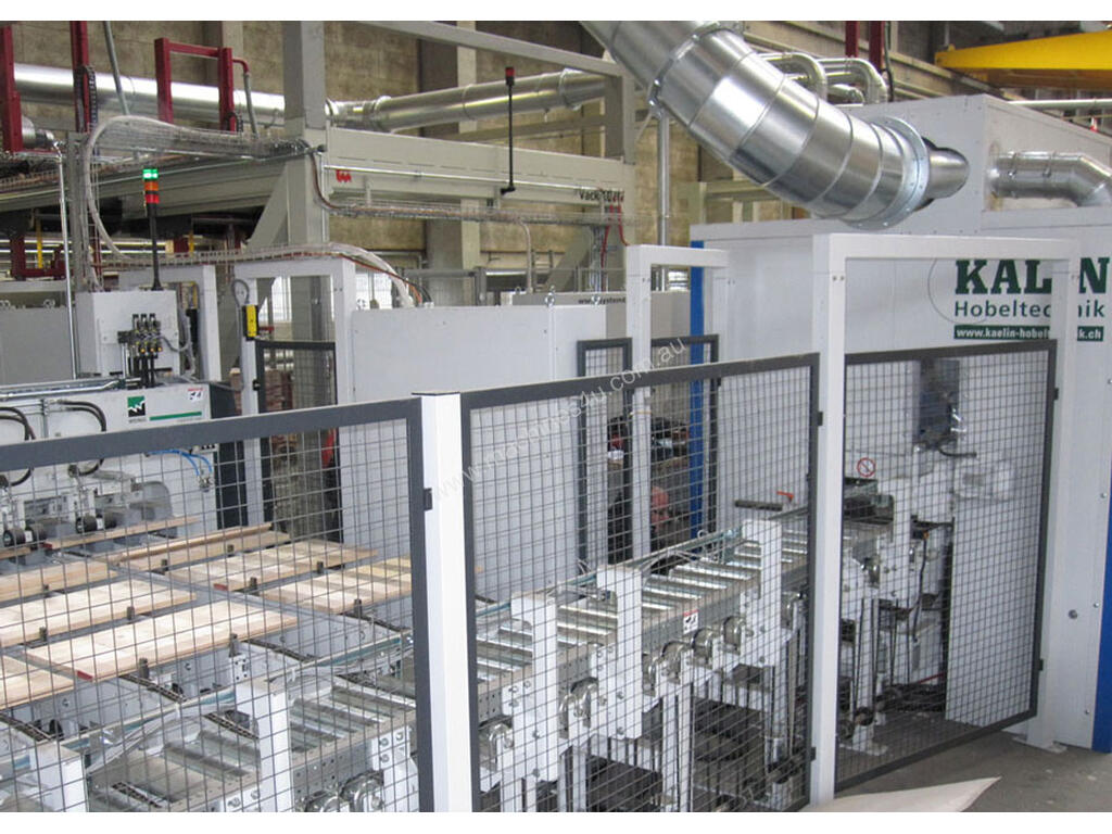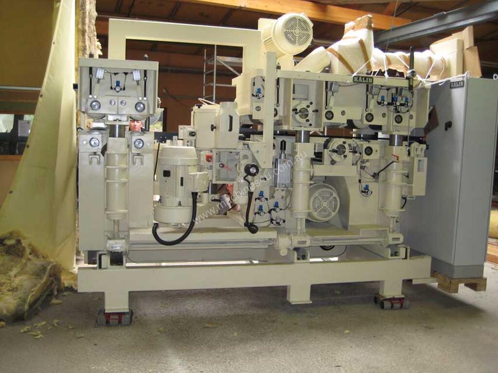 Multi knife finish with or without jointing is achieved with the Kalin knife grinder range. Spindle motors to 55kW saw spindle motors to 150kW. Overpower sensing automatically slows the feed speed when spindle motors reach limits. All spindles are run from VSDs incorporating braking.