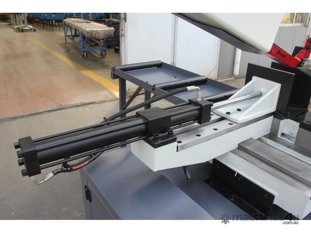 Hydraulic clamping vice and the vice could slide on a guide, to ensure the saw from swivels on both sides