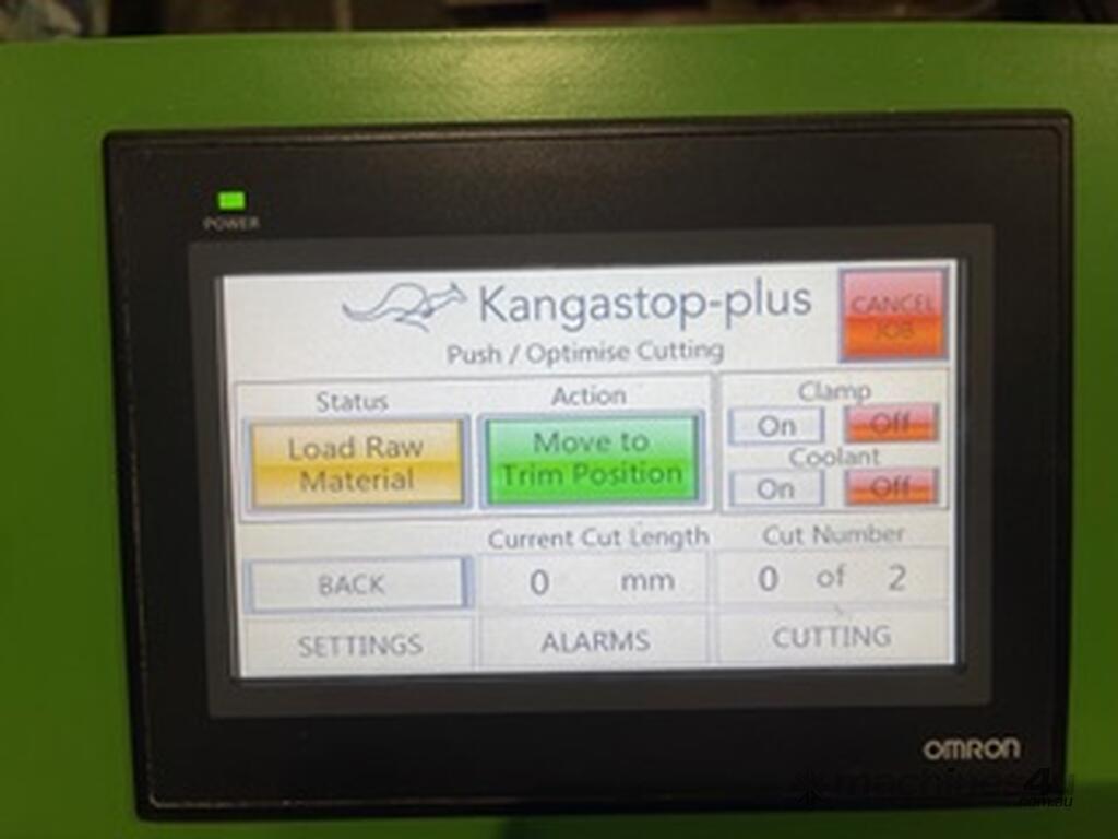 The Kangastop Plus can push sections up to 50 kg and includes connections for pneumatic clamps, lubrication modules and the Saw Triger feature, all controlled via the HMI.