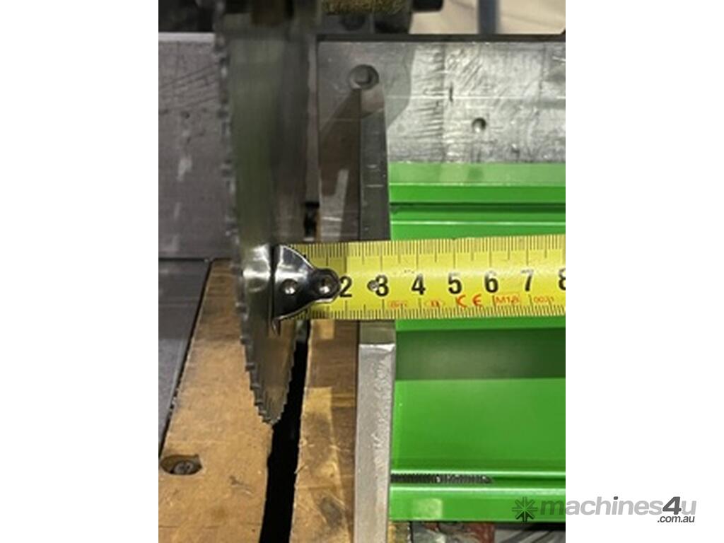 The system supports automated trim cuts, pneumatic clamping (with optional modules), and blade lubrication, which extends saw blade life and reduces burring.