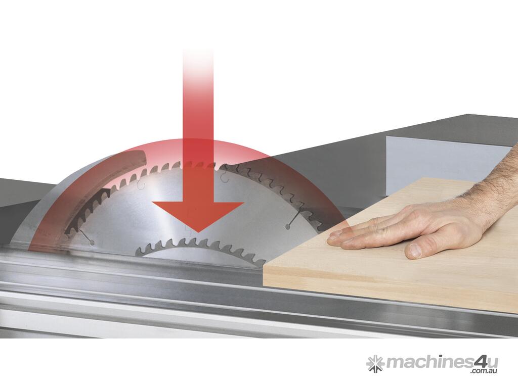 - PCS® - the revolutionary world innovation in safety devises for sliding table saws: Averts the risk of accidents and is immediately ready for use again at the push of a button.