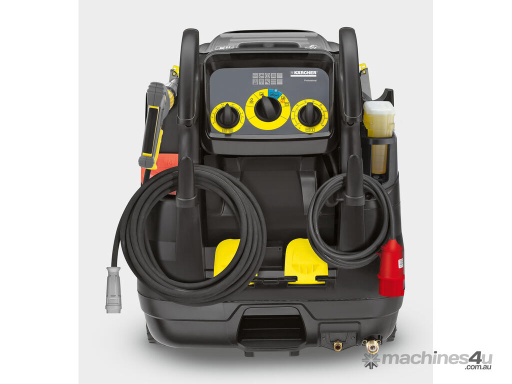 Uncompromising in every respect: maximum pressure, maximum flow rate. The HDS 10/20-4 M EASY!Force hot water high-pressure cleaner is the most powerful machine in the Kärcher Middle class. The innovative eco!efficiency mode, precise cleaning agent dosing unit and optimised burner engineering reduce the impact both on the environment and on your wallet to a minimum, while the patented nozzle technology, ceramic pistons, turbo blower and outstanding pump efficiency ensure top cleaning results. Ease of operation is also ensured by an intuitive control panel, LED displays and a sophisticated mobility concept, all of which simplify operation and transport of the machine. Servicing and maintenance work is easy, as all of the relevant components are easily accessible and operating data can be retrieved at any time.er-tyred wheels, ergonomic handles, lifting points for handling with a forklift, lashing rings and a recessed tread for tilting the machine to guarantee maximum manoeuvrability. 5. Reliability Guaranteed by flue gas monitoring, a corrosion-proof, flexurally stiff, robust chassis, machine protector system, three-piston axial pump with ceramic pistons, heat resistant flue outlet, and much more. 6. Service friendliness Easy access to all components that require servicing and a service switch to call up operating data at any time for troubleshooting.