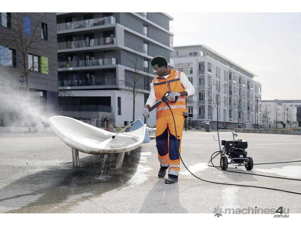 The unit operates at a working pressure of 200 Bar (max. 250 Bar) and is powered by a G210FA engine. The unit weighs 40.7 kg with accessories, and has the following dimensions: 878 X 538 X 702