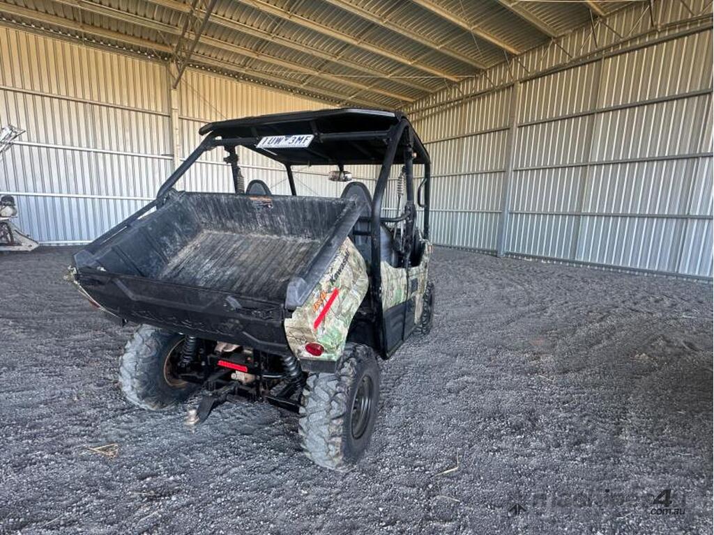 2022 build (TBC). Kawasaki Teryx EPS VTwin 800cc Petrol engine. 4WD with Auto transmission. Tipping tray. Storage Boxes. Rear tow bar. Tyres are in good condition with an estimated 70% tread. Bucket seats. Camouflage decals. Bike has just been through Tawasaki dealership workshop with all necessary parts replaced as recommended. Bike presents in very good condition. Selling as per pictures. For further Information Contact Online-Ag Agents: Robert Bruns or Bryan Florence . This auction will be conducted under the Online-Ag sale terms & conditions. Buyers are requested to familiarize themselves with Online-Ag Auction terms prior to the sale. ALL PAYMENTS MUST BE MADE BY 5PM WEDNESDAY FOLLOWING THE SALE. 5%+GST Buyers Premium & 10% GST applies to this lot.