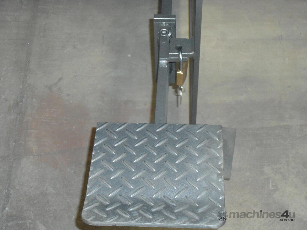 The KGS-4 has a lockable bracket on the pedal so a padlock can stop anyone with out the key to operate the machine,it also has 2 more brackets on the back gate to stop any one with out a key to access the blade area.