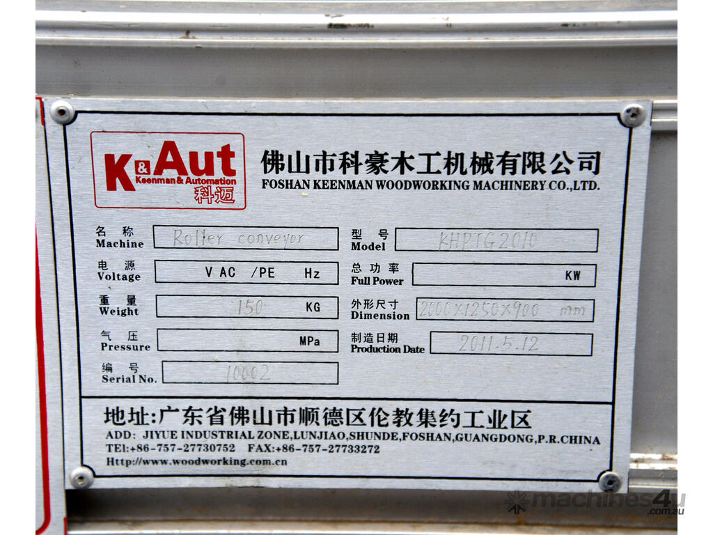 Keenman & Automation 2m x 1250mm wide infeed outfeed roller conveyor KHPTG2010 :      $523 AUD($575 Inc. GST)
