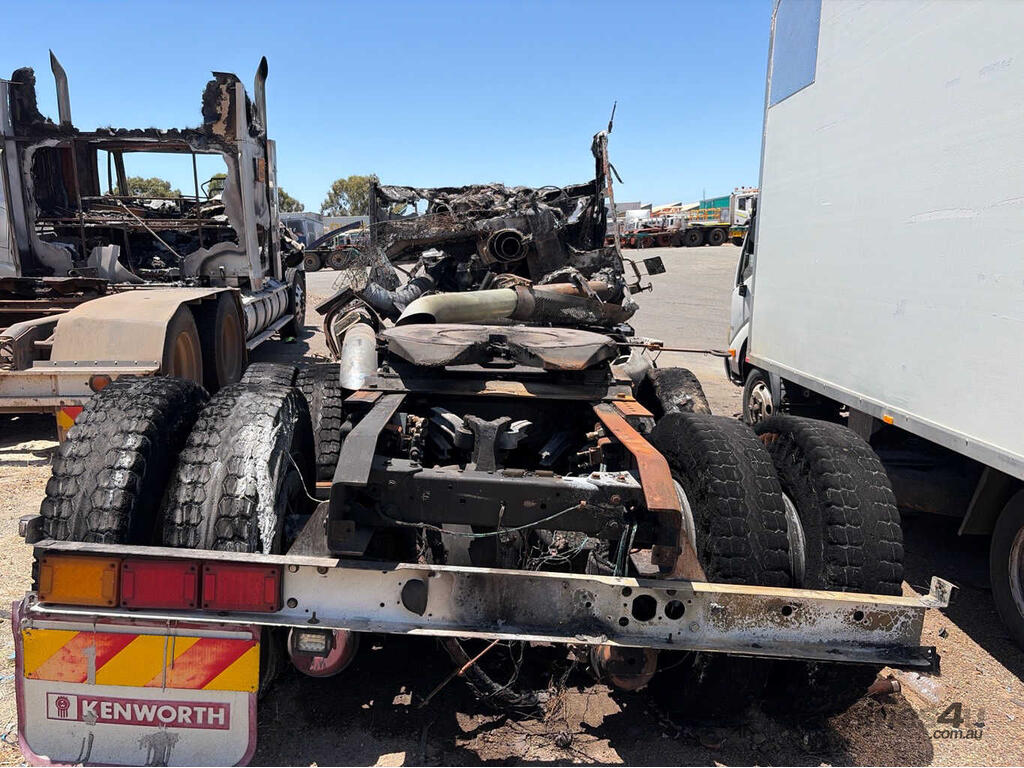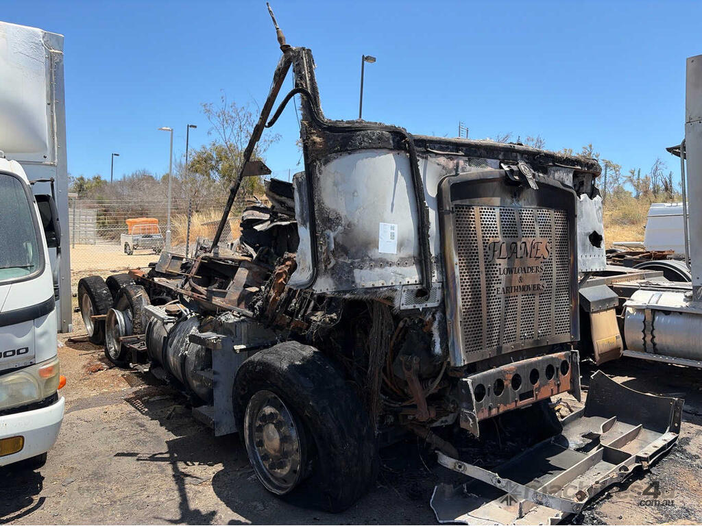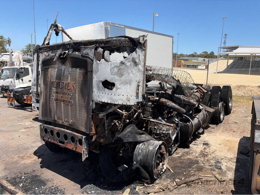 No C/P,Kenworth,K104 Aerodyne,Prime Mover,Manual,6 Cyl,Diesel Turbo,Odometer not visible,Hourmeter not visible,Colour: Burnt,Rego. No: 1CJA516 WA,VIN: 0000000,Sold with No Plates,WOVR Status: WOVR N/A,Incident Type: Fire