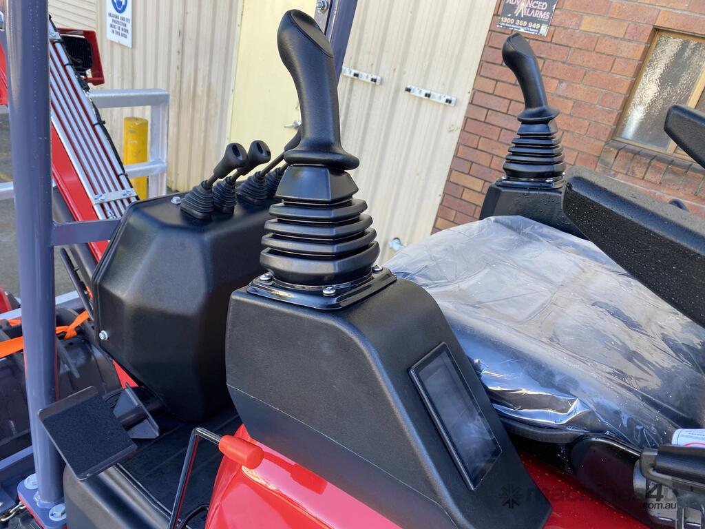 1.5 ton mini excavator with Kubota 3 cylinder 14 hp engine, swing boom, side controls and retractable tracks