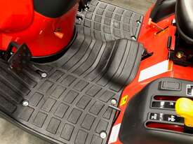 The ergonomically designed operator station places operator controls within easy reach to enjoy a comfortable and smooth ride. A retractable seat belt and operator presence switch are included for safety, while access on and off is obstruction free . The dashboard illuminates when the engine is started. The digital gauge package includes tachometer, fuel and temperature gauges, along with low fuel and high temperature warning lights