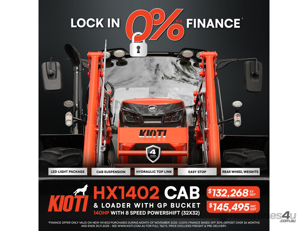 *This offer is only available on purchase with a new Kioti HX1402 Series tractor, 0% Finance based off 30% deposit over 36 months and ends 30.11.2025.