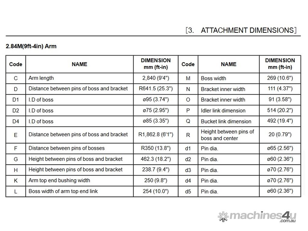 NOTE: This Arm is the Standard Length fitted to a SK140SRLC-7 at 2.84m