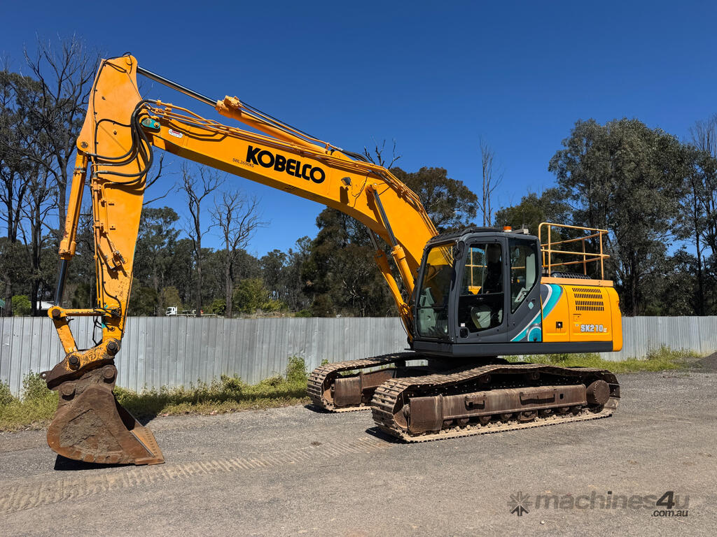 Description: KOBELCO SK210LC-10 Excavator. 2017 model with only 5,500 Hours. Fresh paint job in company colors - can be painted back to original Kobelco Blue. Fitted with Auto greaser, E-stops, isolators, reverse camera, Doherty double locking quick hitch, GP bucket. other attachments available. PRICE = $ 88,500 + GST