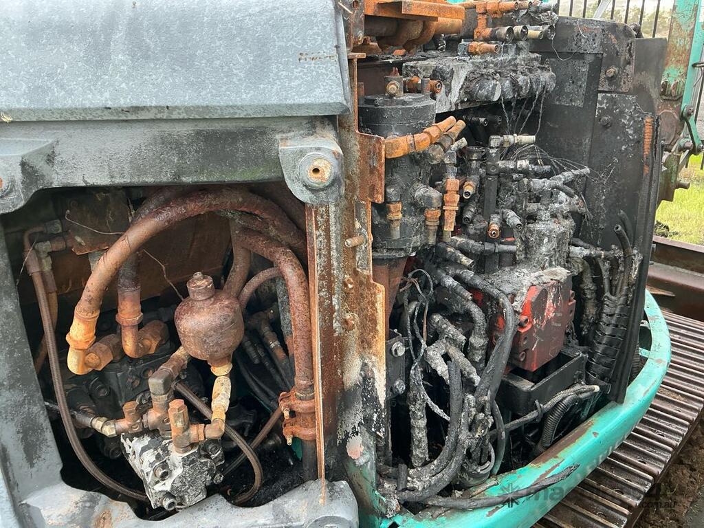 No C/P,Kobelco,SK75UR,Excavator (Steel Tracked),Odometer not visible,12022 (Hrs. Showing on Hour meter),Colour: Burnt,Unregistered,Serial No: YR0404063,Sold with No Plates,WOVR Status: WOVR N/A,Incident Type: Fire