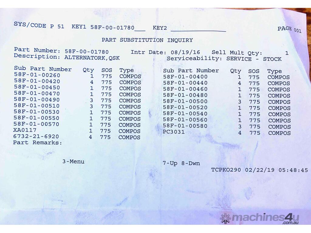 Komatsu 58F-00-01780 Alternator QSK 55Si Delco Remy Genuine 24V 250 Amp :      $3,480 AUD($3,828 Inc. GST)