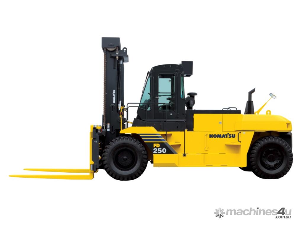The NEW FD250 forklifts feature Komatsu’s designed and manufactured diesel engine, drive-train and wet disc brake system that all provide rugged and dependable life cycle cost benefits.