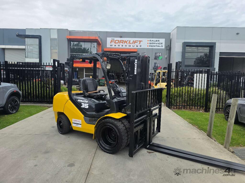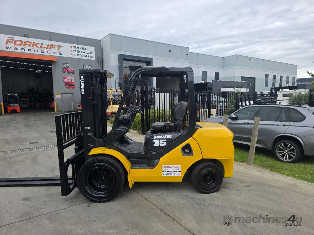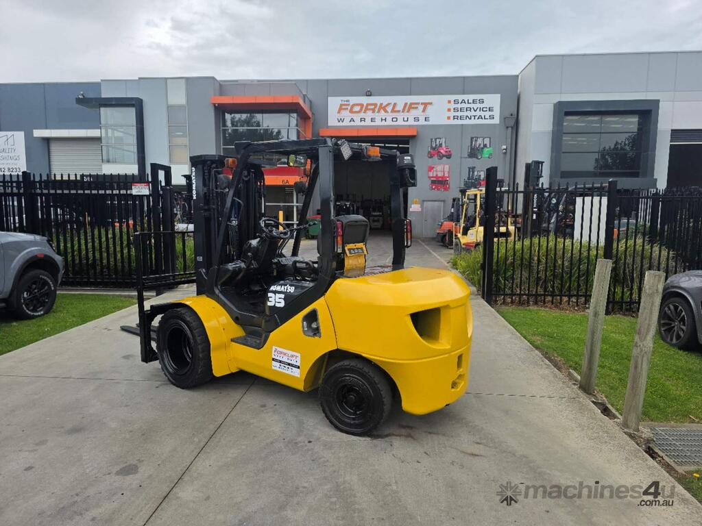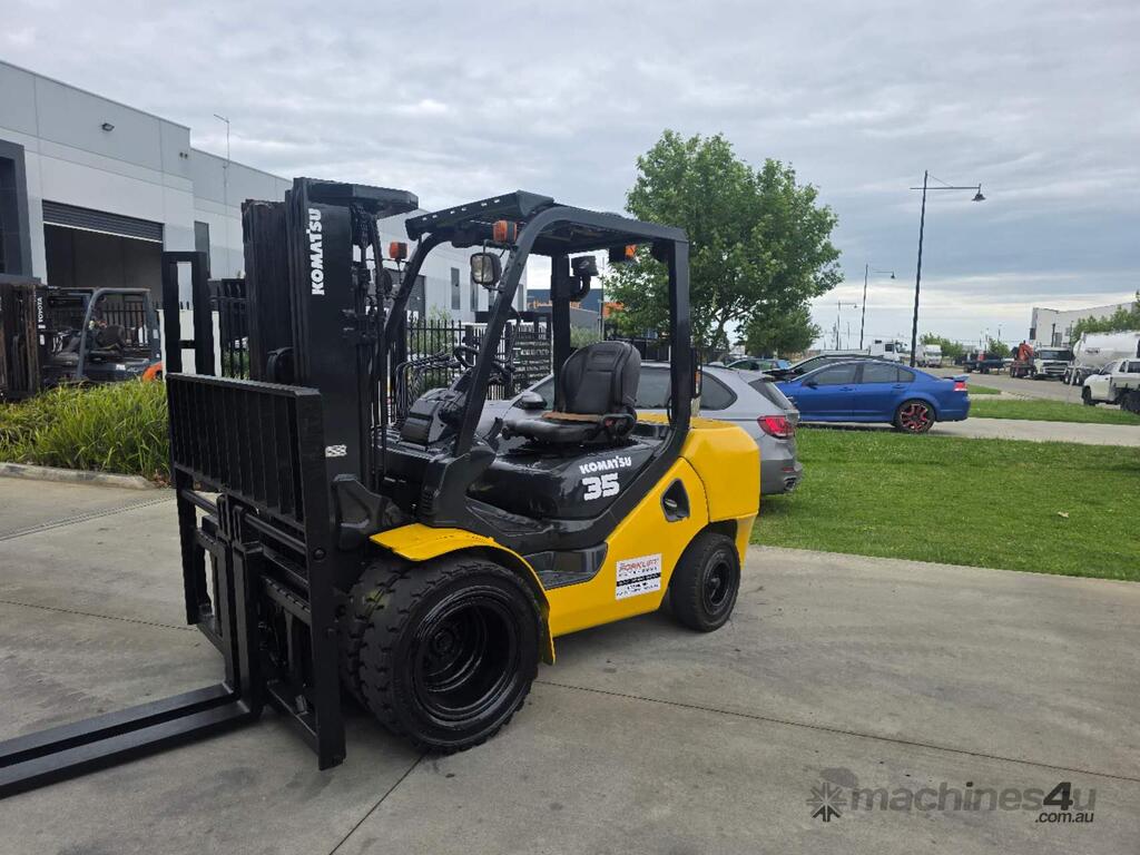 Used Komatsu Forklift 3.5T Diesel Container mast Dual wheel & Wide Carriage with Tyne Positioners