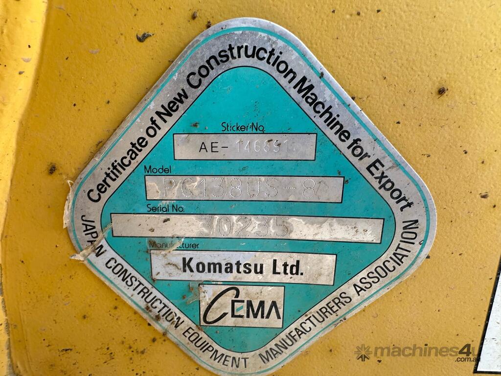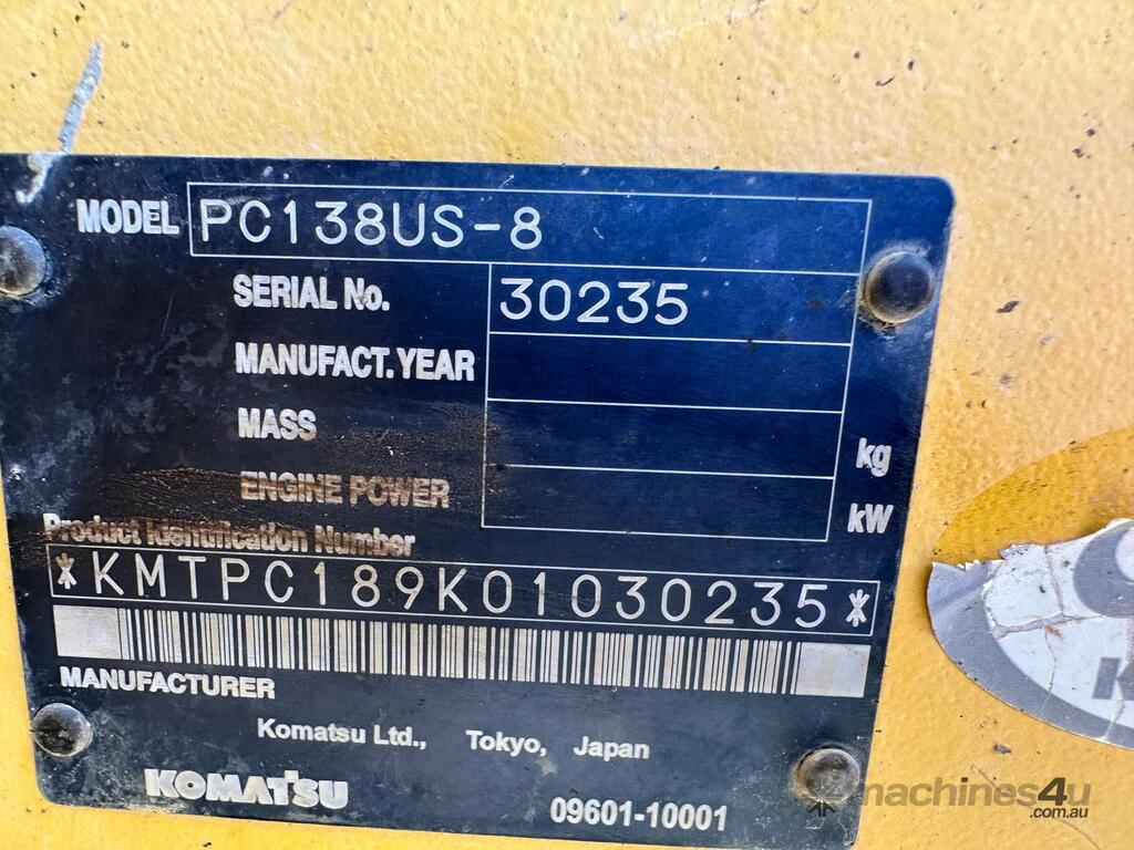No C/P,Komatsu,PC138US-8,Excavator (Steel Track With Rubber Inserts),Engine #: 539574,4 Cyl,Diesel,Turbo,Odometer not visible,13701 (Hrs. Showing on Hour meter),Colour: Yellow,Unregistered,Serial No: KMTPC189K01030235,ROPS No: CT13310509,FOPS No: undefined,Sold with No Plates,Key No: NO KEYS