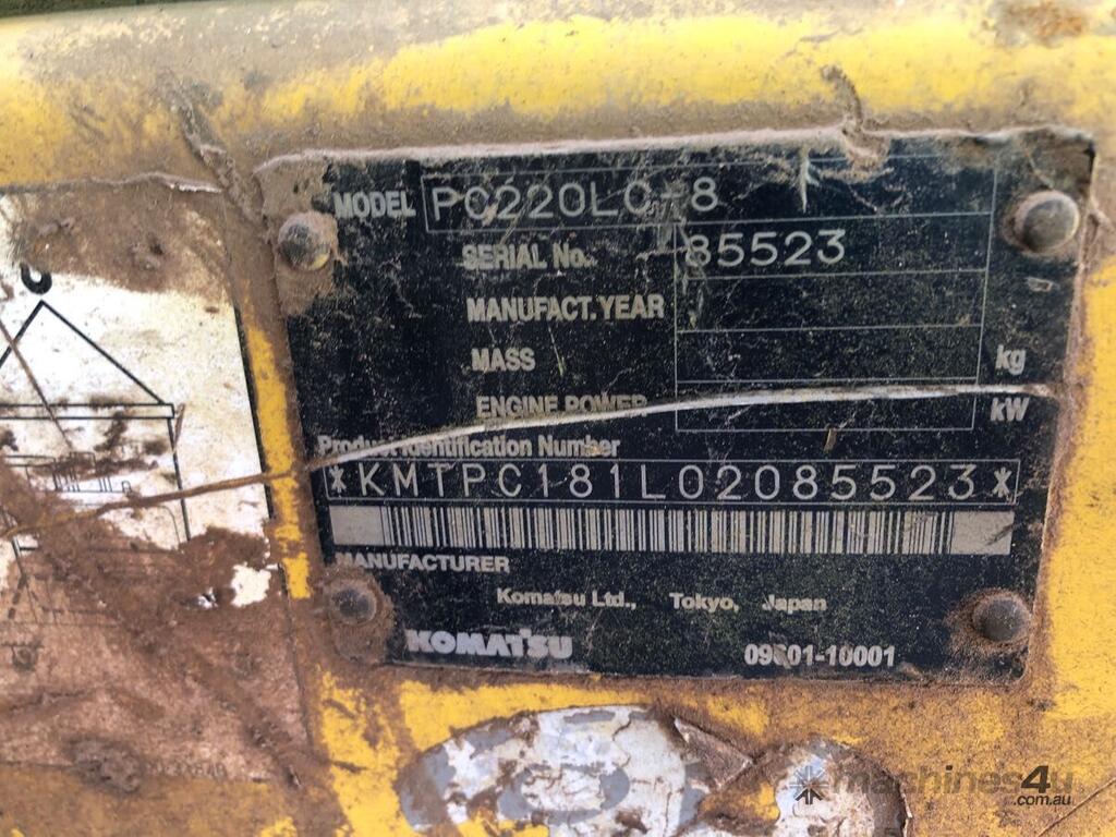 CP: CIRCA null,Komatsu,PC220LC-8,Excavator (Steel Tracked),6 Cyl,Diesel Turbo,Odometer not visible,Hourmeter not visible,Colour: Yellow,Rego. No: NP(S74SZC), Unregistered SA,VIN: KMTPC181L02085523,Chassis: 85523,Serial No: KMTPC181L02085523,ROPS No: T13861811,Sold with No Plates,WOVR Status: WOVR N/A,Incident Type: Not Applicable