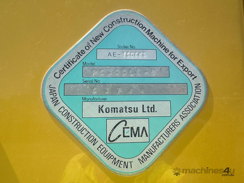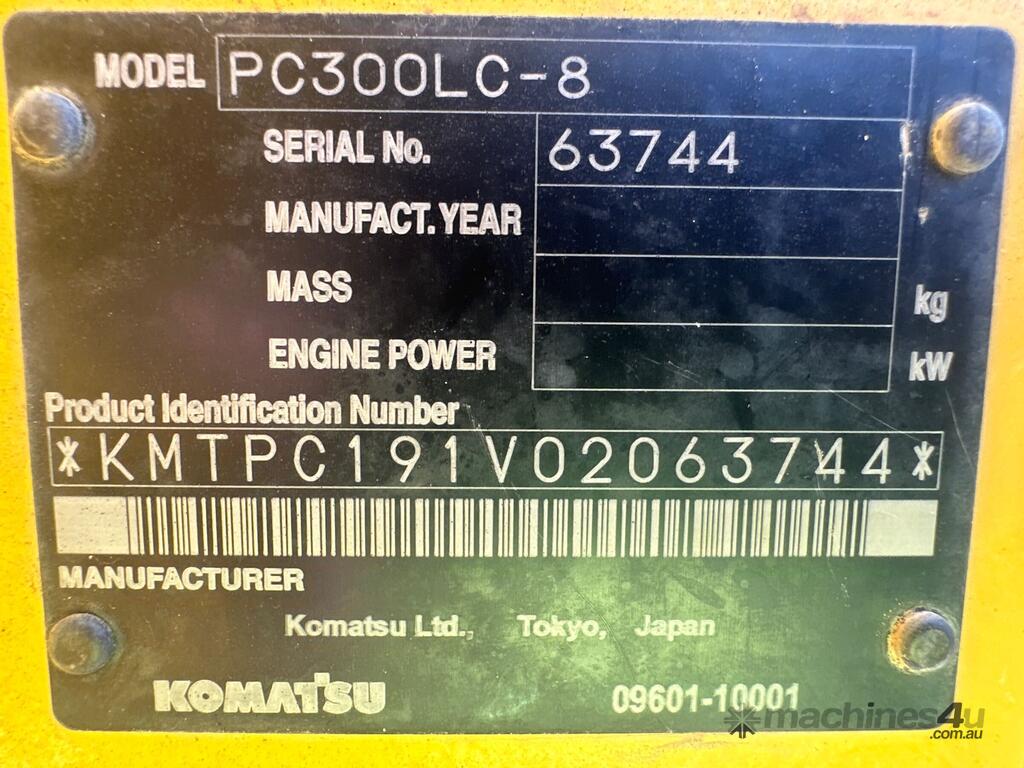 No C/P,Komatsu,PC300LC-8,Excavator (Steel Tracked),8.3 Ltr,6 Cyl,Diesel,Turbo,Odometer not visible,13298 (Hrs. Showing on Hour meter),Colour: Yellow,Unregistered,VIN: KMTPC191V02063744,Serial No: 63744,ROPS No: ,Sold with No Plates,Key No: NO KEYS