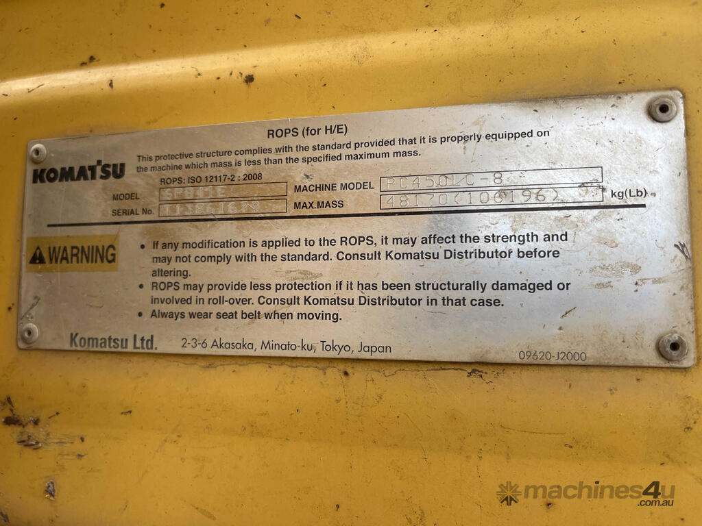 No C/P,Komatsu,PC450 LC-8,Excavator (Steel Tracked),6 Cyl,Diesel,Odometer not visible,11644 (Hrs. Showing on Hour meter),Colour: Yellow,Unregistered,Serial No: KMTPC192P02071345,Sold with No Plates