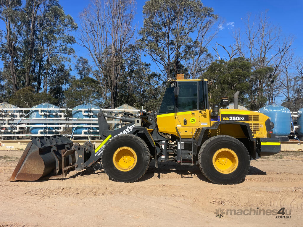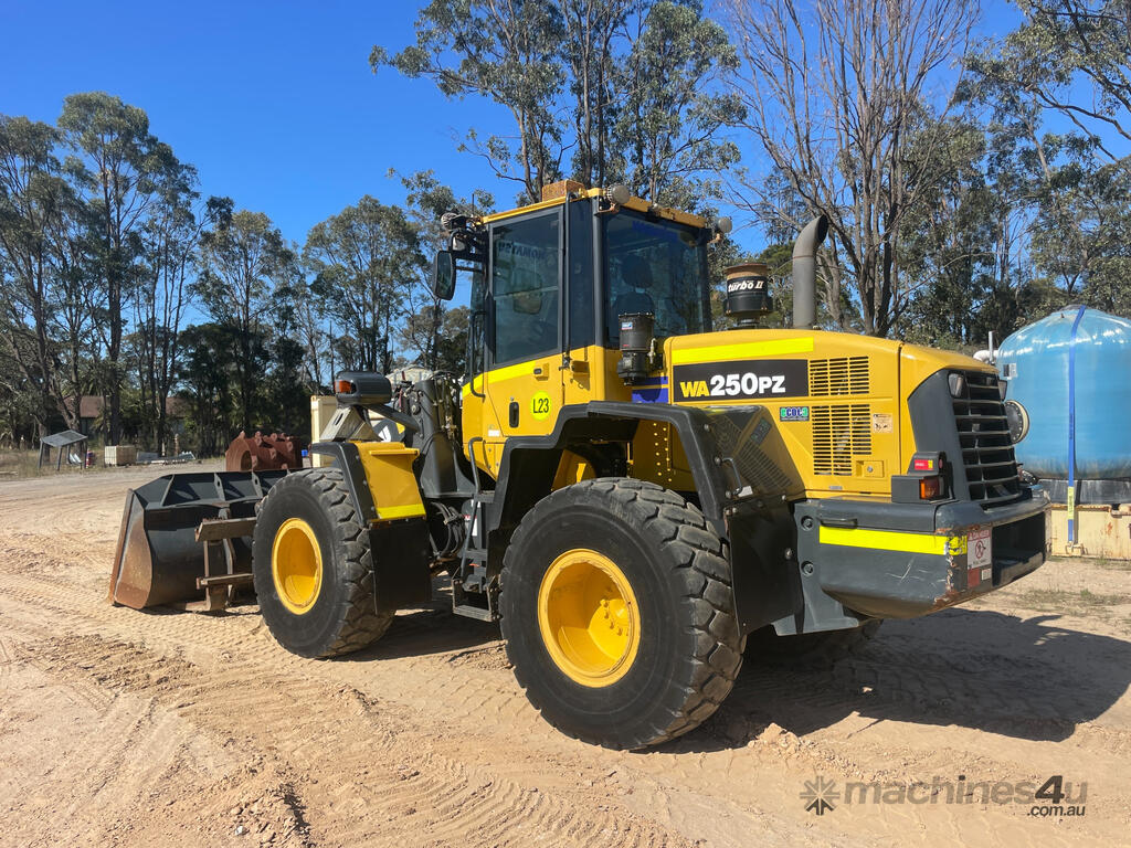 Description: KOMATSU WA250PZ-6 . ROPS FOPS air conditioned cabin. 2017 model with 5,928 hours. EX Komatsu Rental. Fitted with hydraulic quick coupler, GP bucket, Forks, Bridgestone tyres all round, E-stops, isolators, fire extinguisher, reverse camera. PRICE = $115,000 + GST